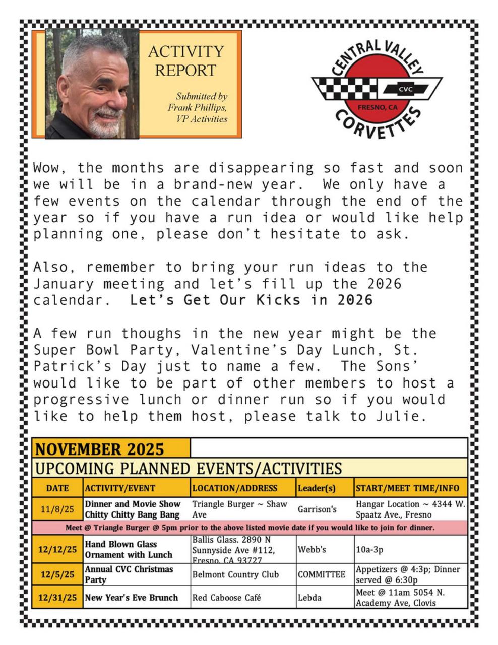 Serving Corvette Owners in Central California's San Joaquin Valley. Chartered November 12, 1991.